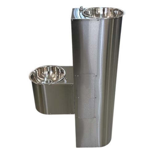 Очень практичный пристенный питьевой двойной фонтанчик с ограничительными кольцами СанПиН в крепком, полностью нержавеющем корпусе, без излишеств. Внимание - на боковине установлен лючок для удобного монтажа и обслуживания, который отсутствует у всех аналогичных моделей конкурентов. Чтобы заменить фильтры вам больше не понадобится демонтировать весь фонтан!